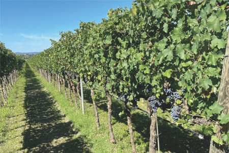 しっかりと濃いガーネット色で、使用するブドウは9月下旬に収穫されます。ブラックベリーやブルーベリーなどのフルーツ香とインクや鉄分、八角などスパイスが豊かに香ります。口当たりの良い滑らかなタンニンで、未熟果を使用した時に感じる青い茎くささは微塵も感じられません。飲みごたえあるボディにはしっかりとした肉系ラグーソースや煮込み料理などが相性抜群です。